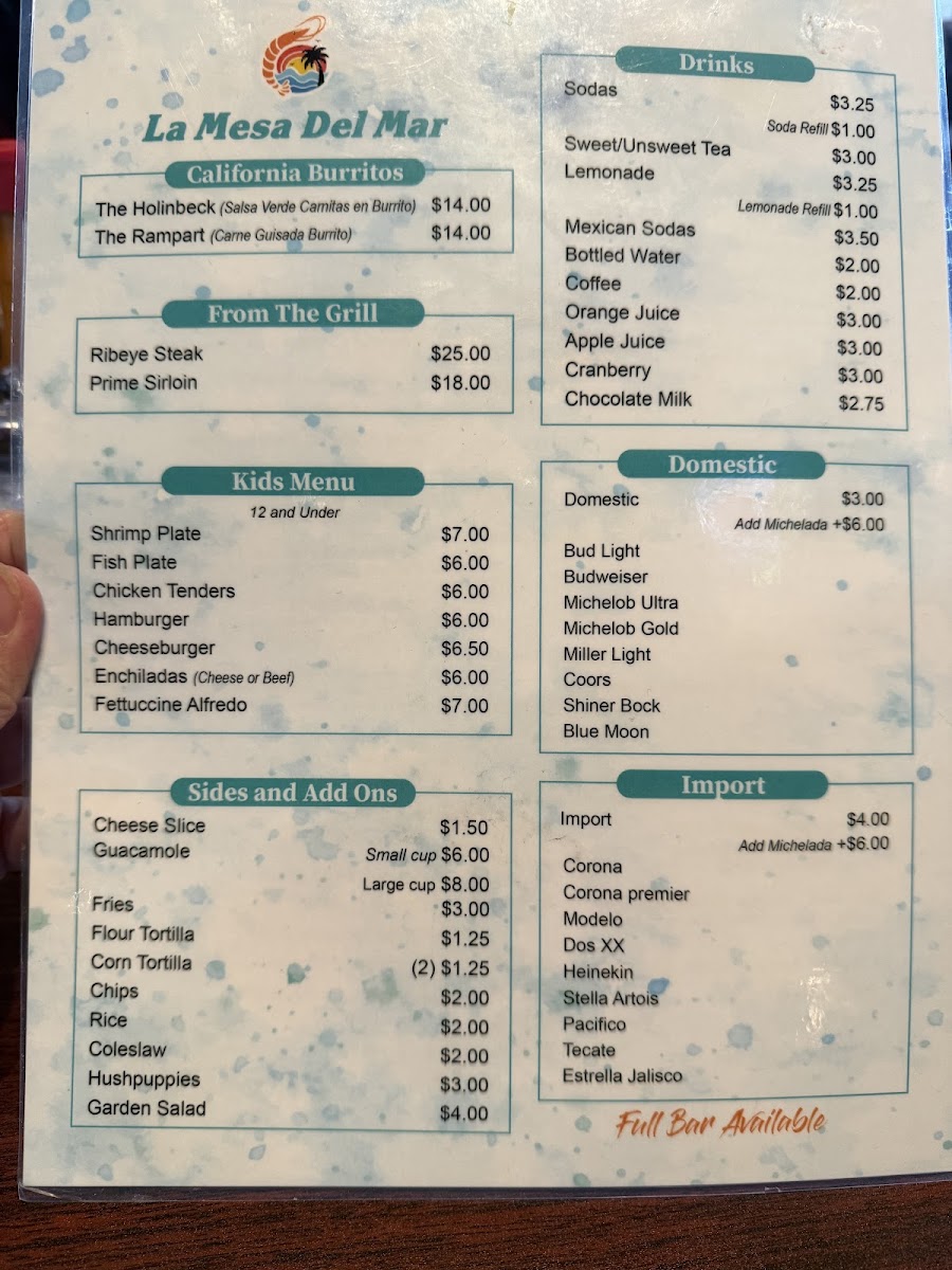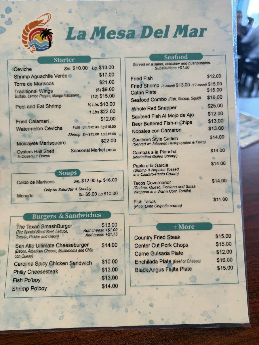But it’s the dedicated and friendly staff that truly enhances your visit, providing attentive service that makes dining here memorable. Whether you’re a local or just passing through, a visit to La Mesa Del Mar is a must for seafood lovers looking to enjoy fresh, flavorful dishes in a welcoming setting.